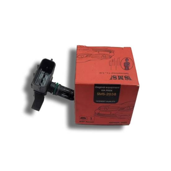 سنسور مپ (Map Sensor) مناسب برای خودروی پراید. این سنسور روی منیفولد (در راه مسیر ورودی هوا) قرار میگیرد تا فشار مطلق منیفولد را به ایسیو گزارش کند و ایسیو از این طریق تغییرات فشار هوای ورودی منیفولد را تشخیص میدهد و از این طریق میتواند میزان پاشش سوخت را نسبت به هوای ورودی تنظیم کند. (دقت کنید که فشار هوای ورودی یکی از پارامترهای ترکیب سوخت و هوا می باشد)